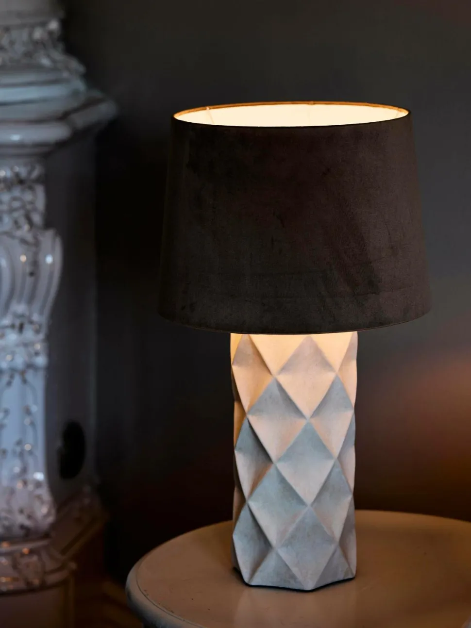 Hazel lampefod i keramik. Lampefoden er håndlavet og udskåret med en honeycomb-effekt, der skaber en smuk dybde og et fantastisk lysspil. Lampefodens vintagefinish gør hver lampe unik og betyder, at netop din lampe kan afvige lidt fra produktbilledet. Ledning med strømafbryder og stik. E27 fatning. Maks. 40 W. IP20. Højde 43 cm, diameter 16 cm. Passer til lampeskærm med 25-35 cm diameter. Pære købes separat.