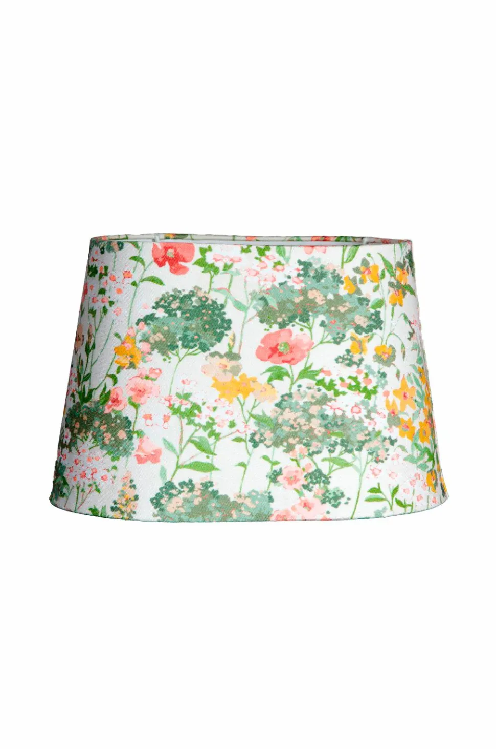 omera lampeskærmen har et klassisk mønster af sommerblomster i harmoniske farver, hvilket gør den velegnet til både traditionel og landlig indretning. Den ovale form med et let tilspidset design gør den ideel til smalle rum. Den er udstyret med et clip-on-beslag, der sættes direkte på pæren.