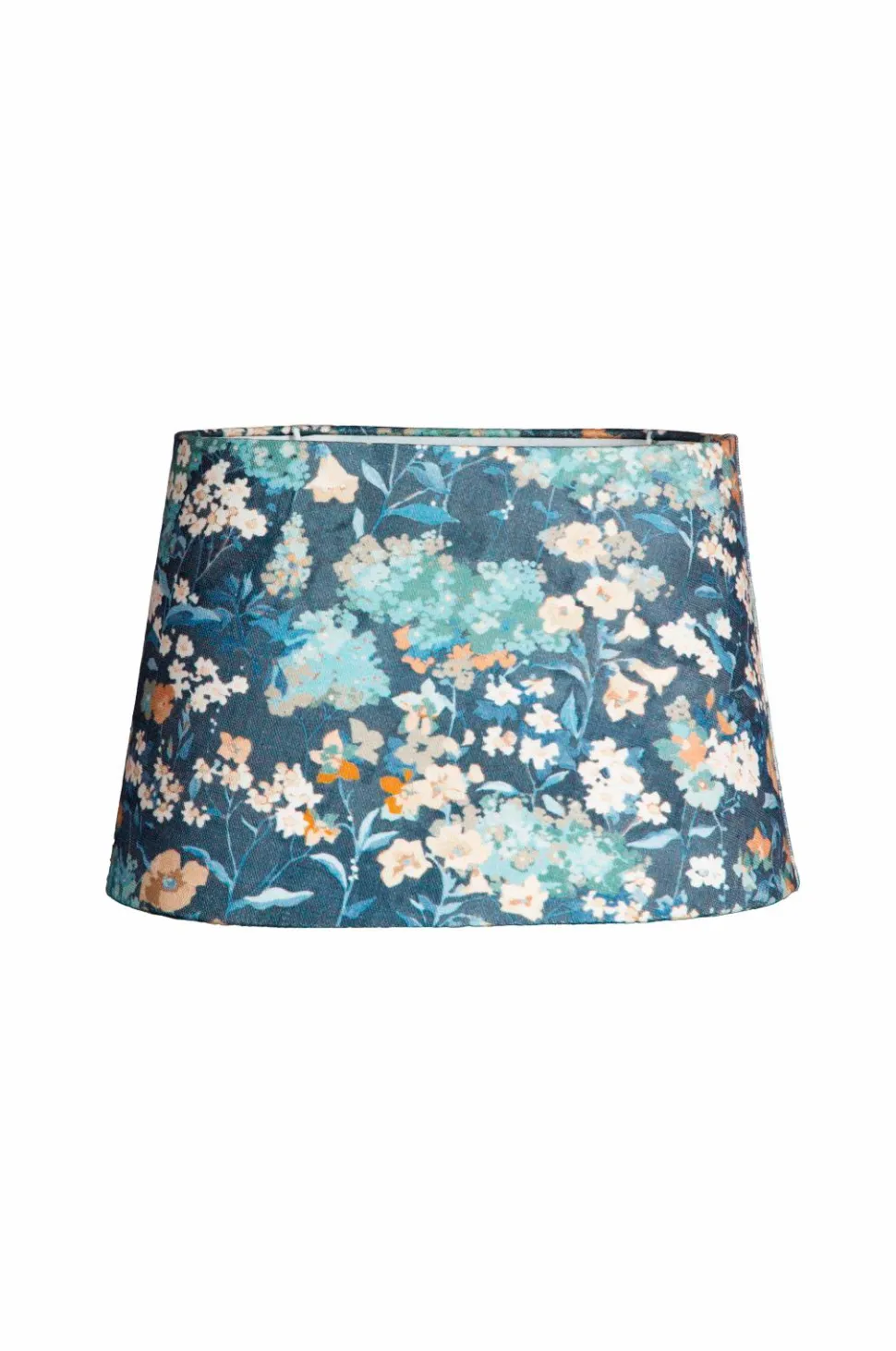 omera lampeskærmen har et klassisk mønster af sommerblomster i harmoniske farver, hvilket gør den velegnet til både traditionel og landlig indretning. Den ovale form med et let tilspidset design gør den ideel til smalle rum. Den er udstyret med et clip-on-beslag, der sættes direkte på pæren.