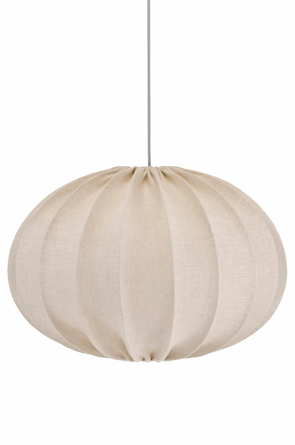 Loftskærmen Hilma giver et blødt indtryk i rummet, her klædt i et smukt hørstof med en fin struktur. Findes i flere farver og størrelser. Ledningssæt købes separat.