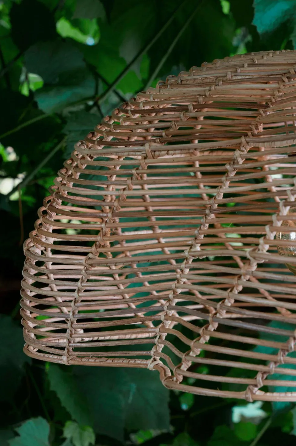 Mayla er en elegant loftslampe lavet af håndvævet naturrotting, der giver en varm, organisk og indbydende atmosfære i dit hjem. Den omhyggeligt udformede skærm er lavet af sammenflettede rattan-tråde, hvilket giver hvert stykke en unik tekstur og karakter. Dens let snoede form giver et moderne, men bohemeagtigt præg til ethvert rum – perfekt til dem, der ønsker et personligt og udtryksfuldt interiør. Da lampen er fremstillet af naturmaterialer, kan både form og farve variere en smule, og overfladen kan udvikle en smuk patina med tiden – en del af dens autentiske charme. Mayla måler 53 cm i diameter og 32 cm i højden og leveres med et sort kabelbeslag, der er egnet til udendørs brug. Lyskilde max 40w (e27).