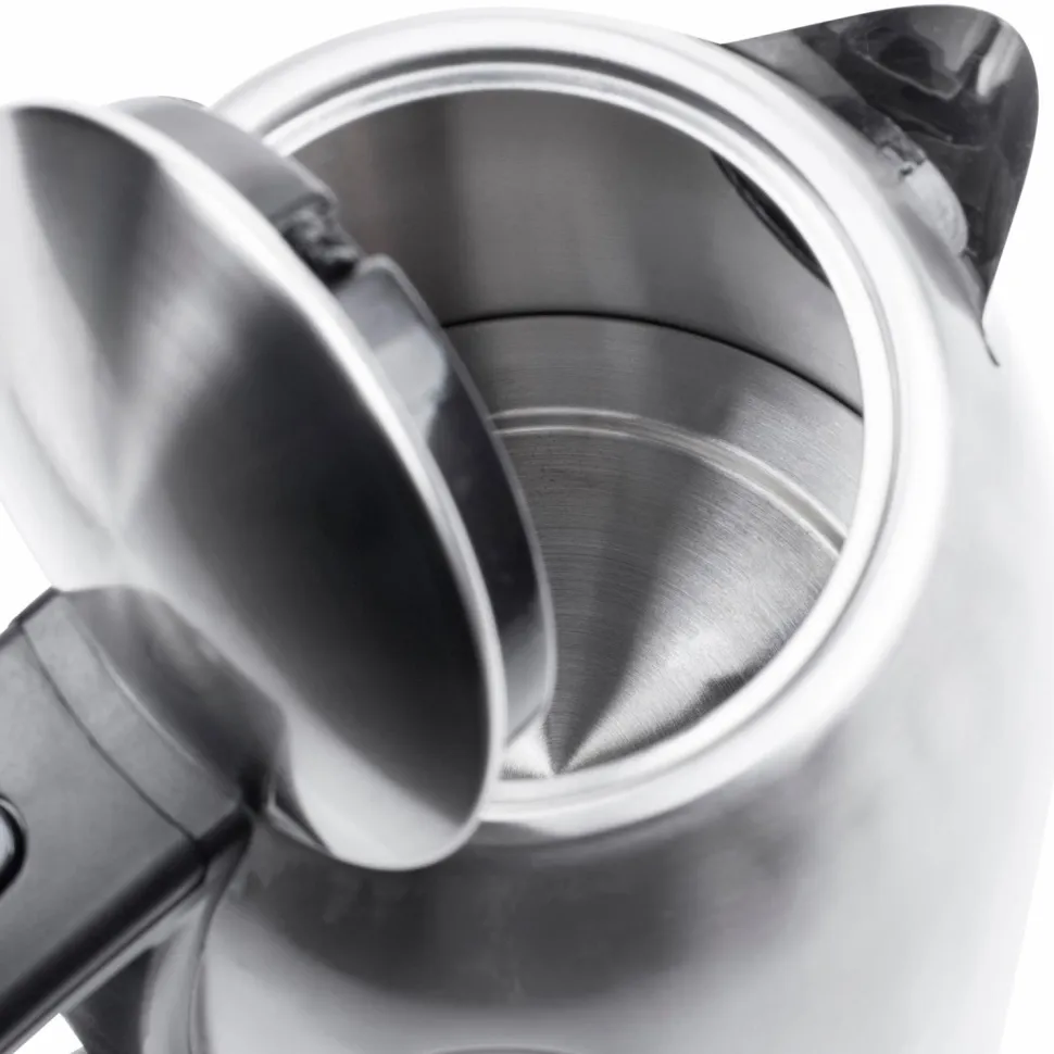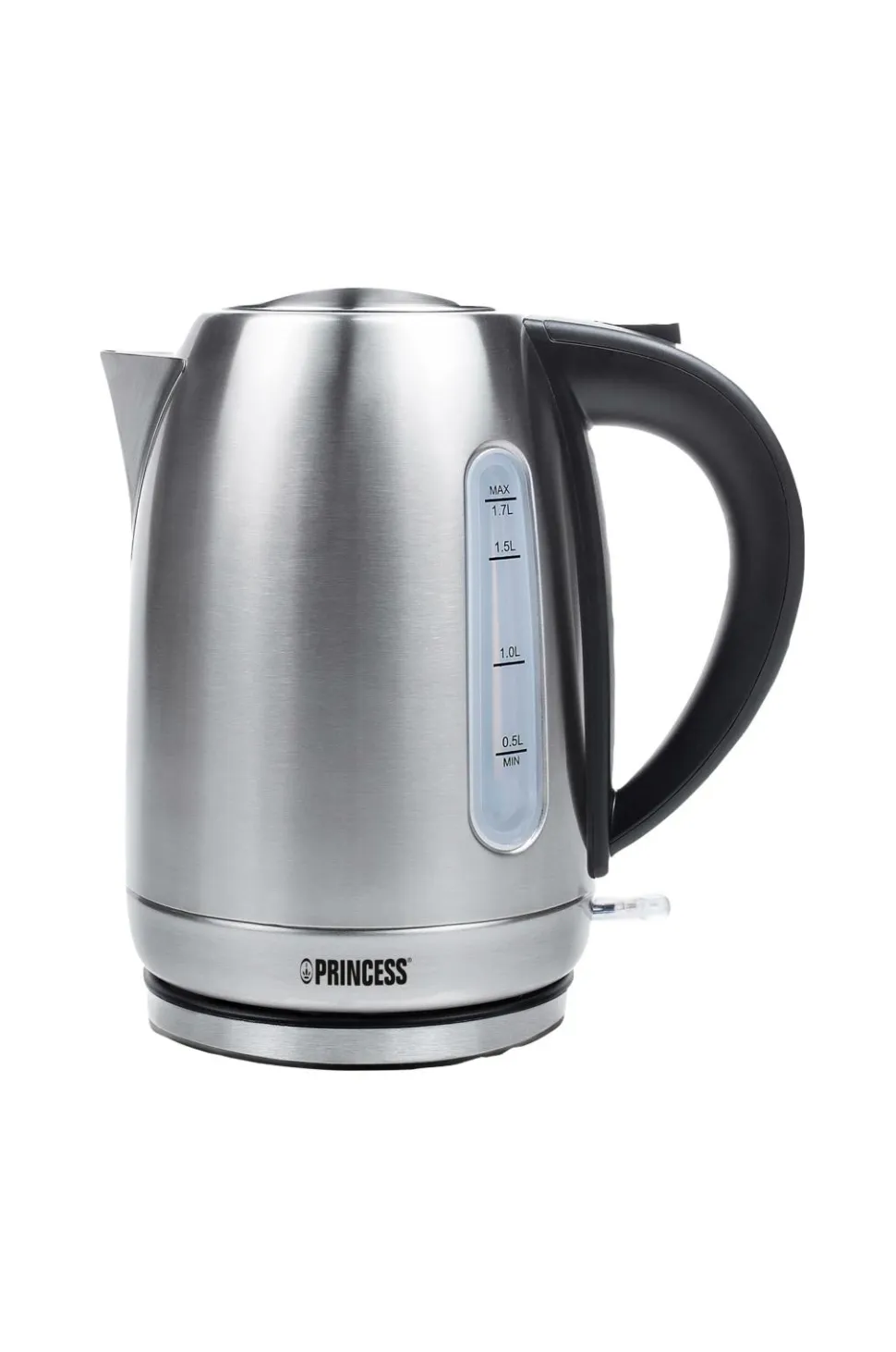 Den elegante Princess 236018-kedel har en kapacitet på 1,7 liter. Perfekt til at koge vand til te eller pasta. Med et ledningsfrit design og tredobbelte sikkerhedsfunktioner er den nem at bruge og holdbar. Det skjulte 2200 W varmeelement opvarmer vandet hurtigt. Kedlen har en 360-graders base og en Strix-kontrol i rustfrit stål. Vandstandsindikatoren forhindrer overfyldning og sparer energi. Automatisk slukning aktiveres ved kogepunktet, og der er tørkogningsbeskyttelse for sikker drift uden vand.