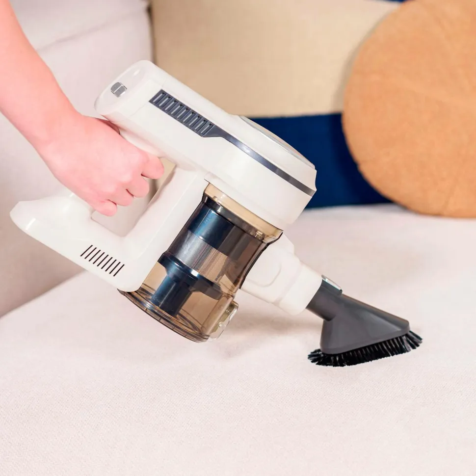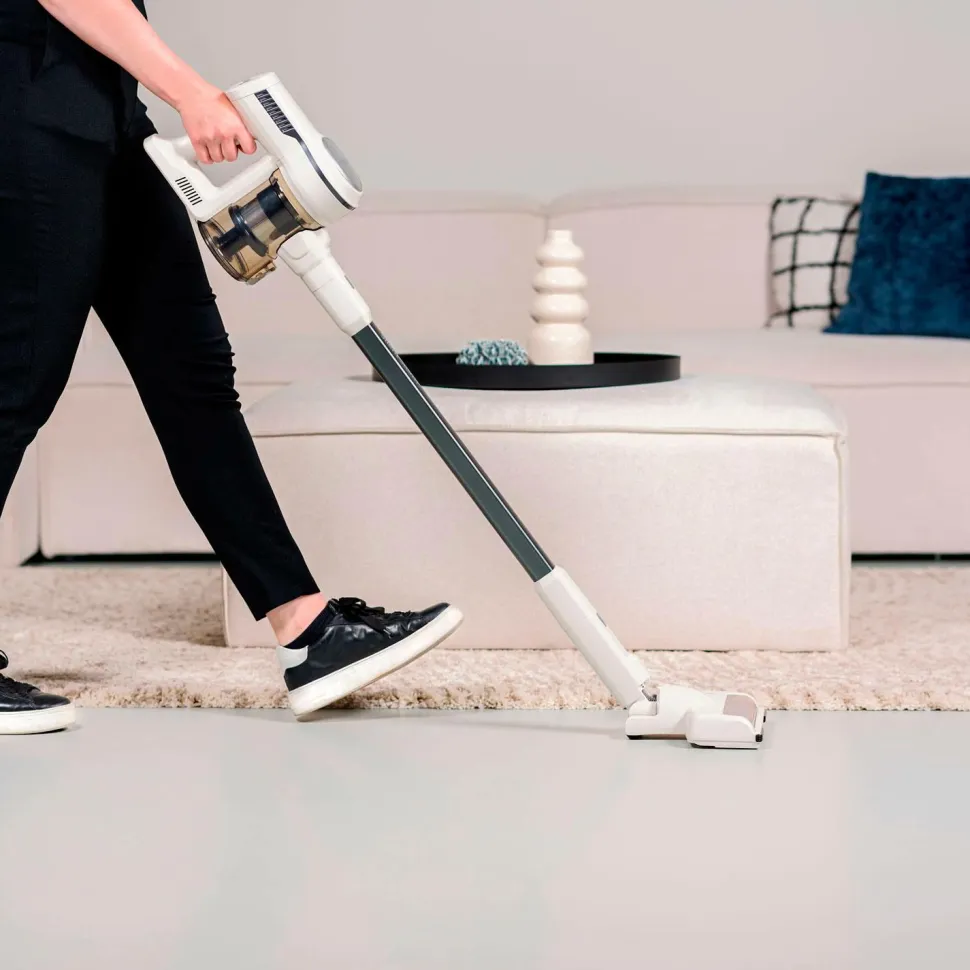 Vi præsenterer en højtydende ledningsfri støvsuger med en kraftig motor, der sikrer effektiv rengøring. Den leveres med let tilgængeligt tilbehør, der opbevares på slangen, og har hygiejnisk støvbortskaffelse.