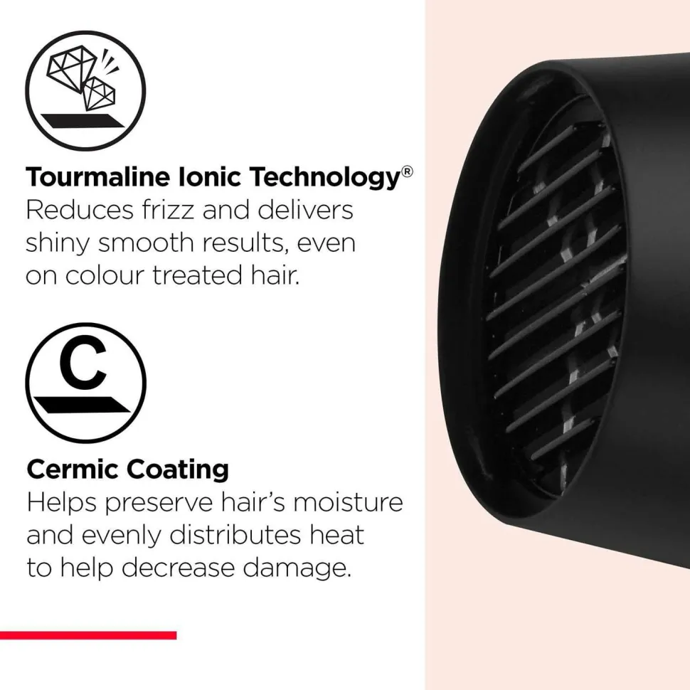 • Turmalin-ion-teknologi reducerer krus og tilfører glans, velegnet til farvebehandlet hår