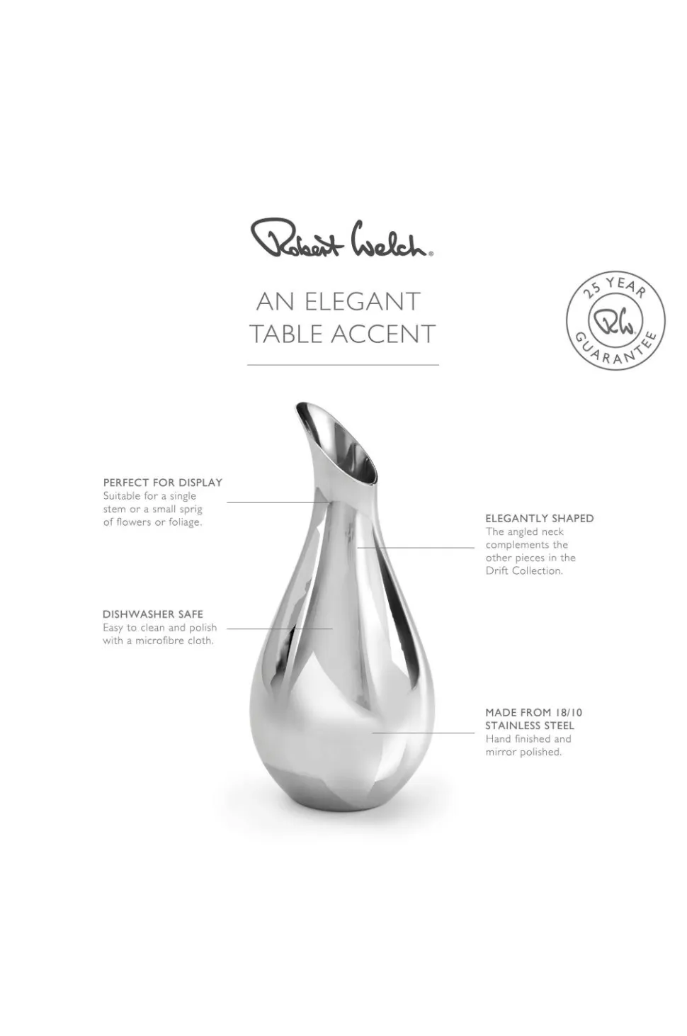En elegant miniaturevase fra den snoede Drift-serie af Robert Welch. Fremstillet af fineste 18/10 rustfrit stål med blankpoleret overflade. Leveres i gaveæske.