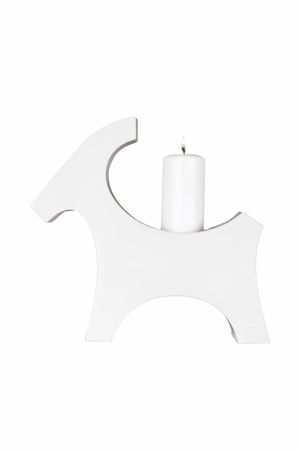 Lysestage til bloklys, 7 cm i diameter, med blank, hvid glasur. Fremstillet af porcelænsler og håndstøbt for et unikt præg.