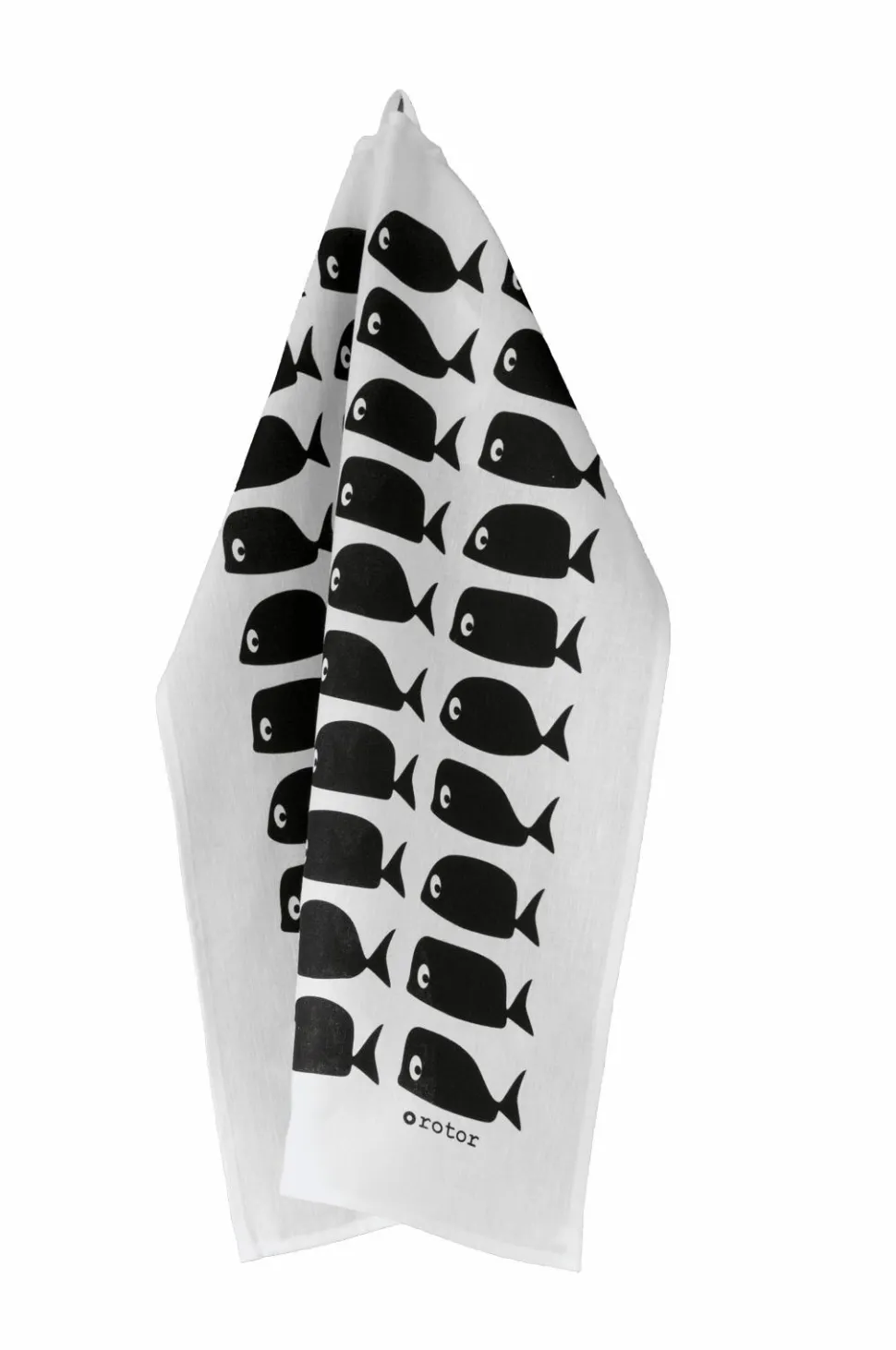 Køkkenhåndklæde med “whale by rotor”-print – en stilfuld og praktisk tilføjelse til ethvert køkken. Lavet til at holde og kan vaskes ved 60°c for nem rengøring. Omhyggeligt udformet i Sölvesborg, Sverige.