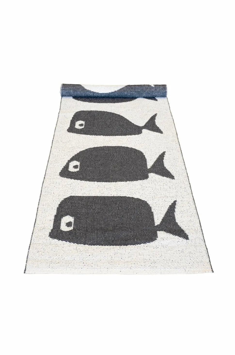 whale tæppet i sort og hvid er ideelt til både indendørs og udendørs miljøer. Det vendbare design med positiv/negativ kontrast giver alsidighed og stil til forskellige rum. Tæppet er vævet af svenskproducerede, ftalatfrie pvc-bånd og har høj uv-bestandighed og svejsede kanter for ekstra holdbarhed.