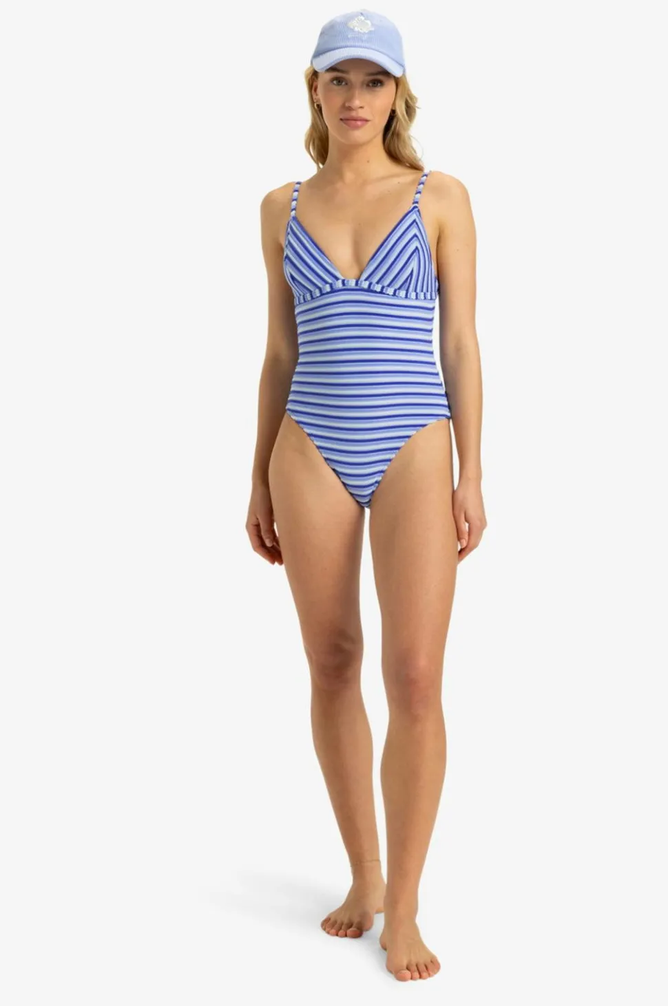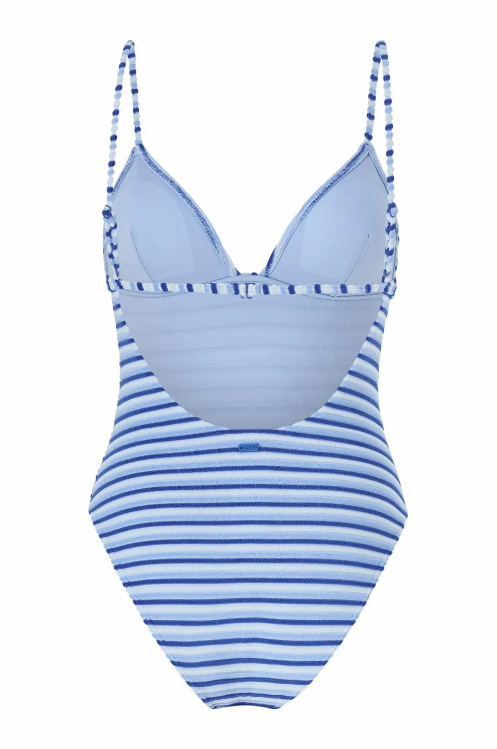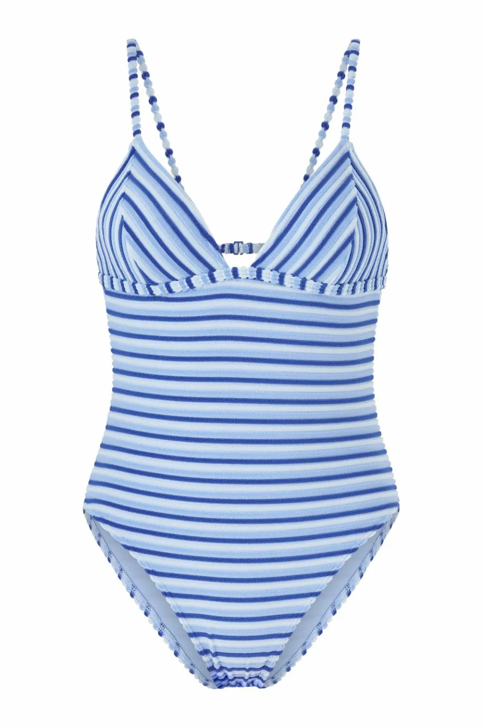 • Helt foret badedragt i polyester med struktur og stribede mønstre