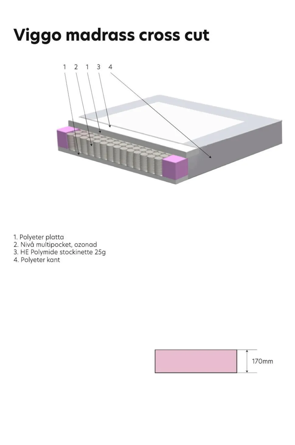 VIGGO, sengen designet til et helt liv – konstruktionen giver en bred vifte af muligheder for at ændre komfort og stil. En Softbed er en seng med indbygget hovedgærde, hvor du kan vælge din komfort. Alt sammen så det passer til din livsstil. At kunne opgradere, renovere og reparere din seng er en vigtig bæredygtig forpligtelse, da det forlænger din sengs levetid. Designet giver dig også mulighed for at genbruge din seng. Vi tilbyder 25 års garanti på fjederbrud. Sengen består af en ramme lavet af gran, der er dækket af blødt stof af 100 % polyester. Kassetterne er 22 cm høje chesspocket, hvor hver anden spiral er 16 cm høj og hver anden er 18 cm høj. Det giver en blød og hyggelig følelse. Benene er af metal og 19 cm høje. Madrassen består af en kerne af hyperblødt skum, der er omviklet med 4-kanals hulfibervat, som leder fugt og varme væk. Topmadrassen er piqué, hvilket betyder, at betrækket ikke kan tages af, men det giver en blød overfladefornemmelse.