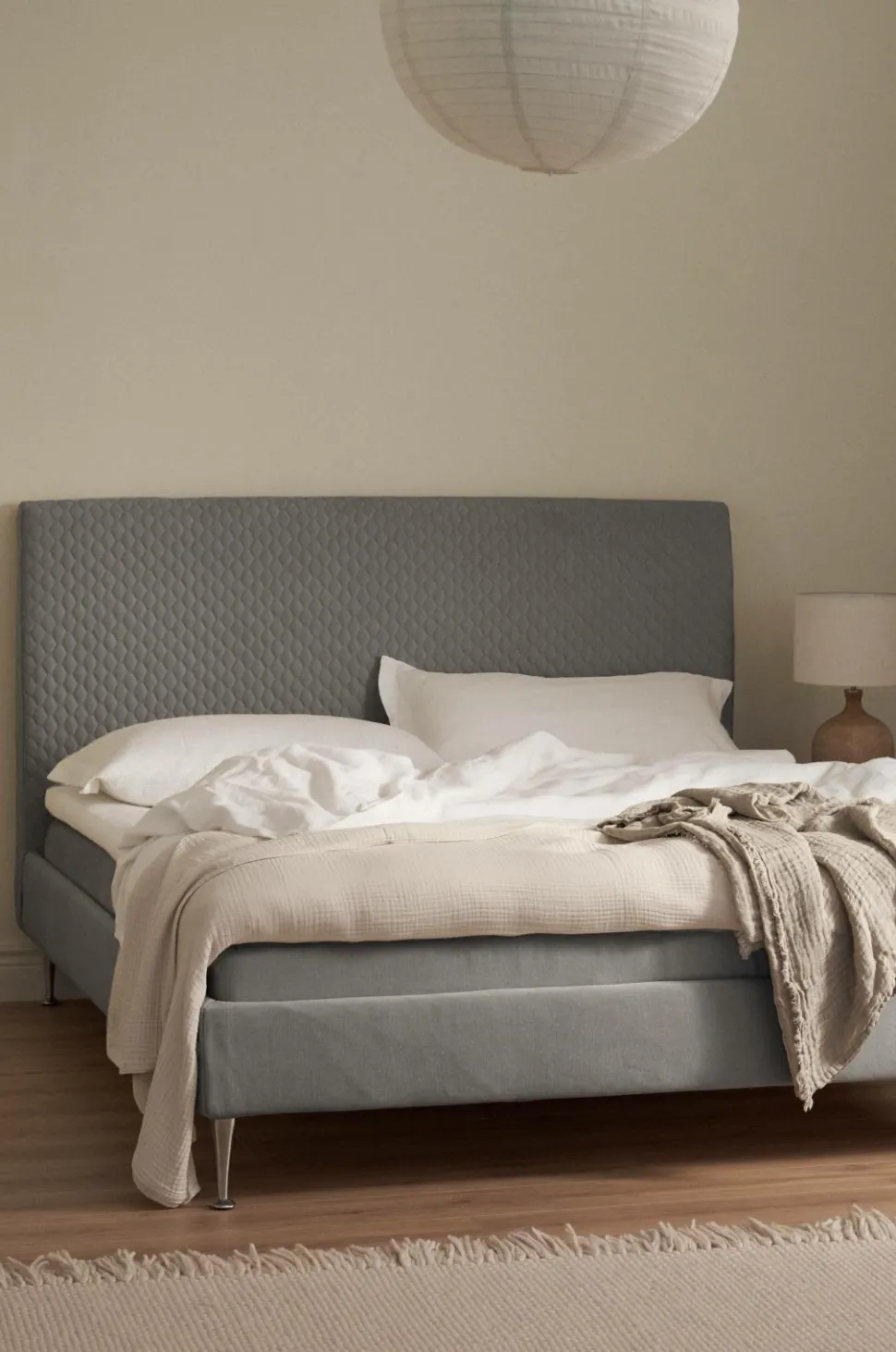 VIGGO, sengen designet til et helt liv – konstruktionen giver en bred vifte af muligheder for at ændre komfort og stil. En Softbed er en seng med indbygget hovedgærde, hvor du kan vælge din komfort. Alt sammen så det passer til din livsstil. At kunne opgradere, renovere og reparere din seng er en vigtig bæredygtig forpligtelse, da det forlænger din sengs levetid. Designet giver dig også mulighed for at genbruge din seng. Vi tilbyder 25 års garanti på fjederbrud. Sengen består af en ramme lavet af gran, der er dækket af blødt stof af 100 % polyester. Kassetterne er 22 cm høje chesspocket, hvor hver anden spiral er 16 cm høj og hver anden er 18 cm høj. Det giver en blød og hyggelig følelse. Benene er af metal og 19 cm høje. Madrassen består af en kerne af hyperblødt skum, der er omviklet med 4-kanals hulfibervat, som leder fugt og varme væk. Topmadrassen er piqué, hvilket betyder, at betrækket ikke kan tages af, men det giver en blød overfladefornemmelse.