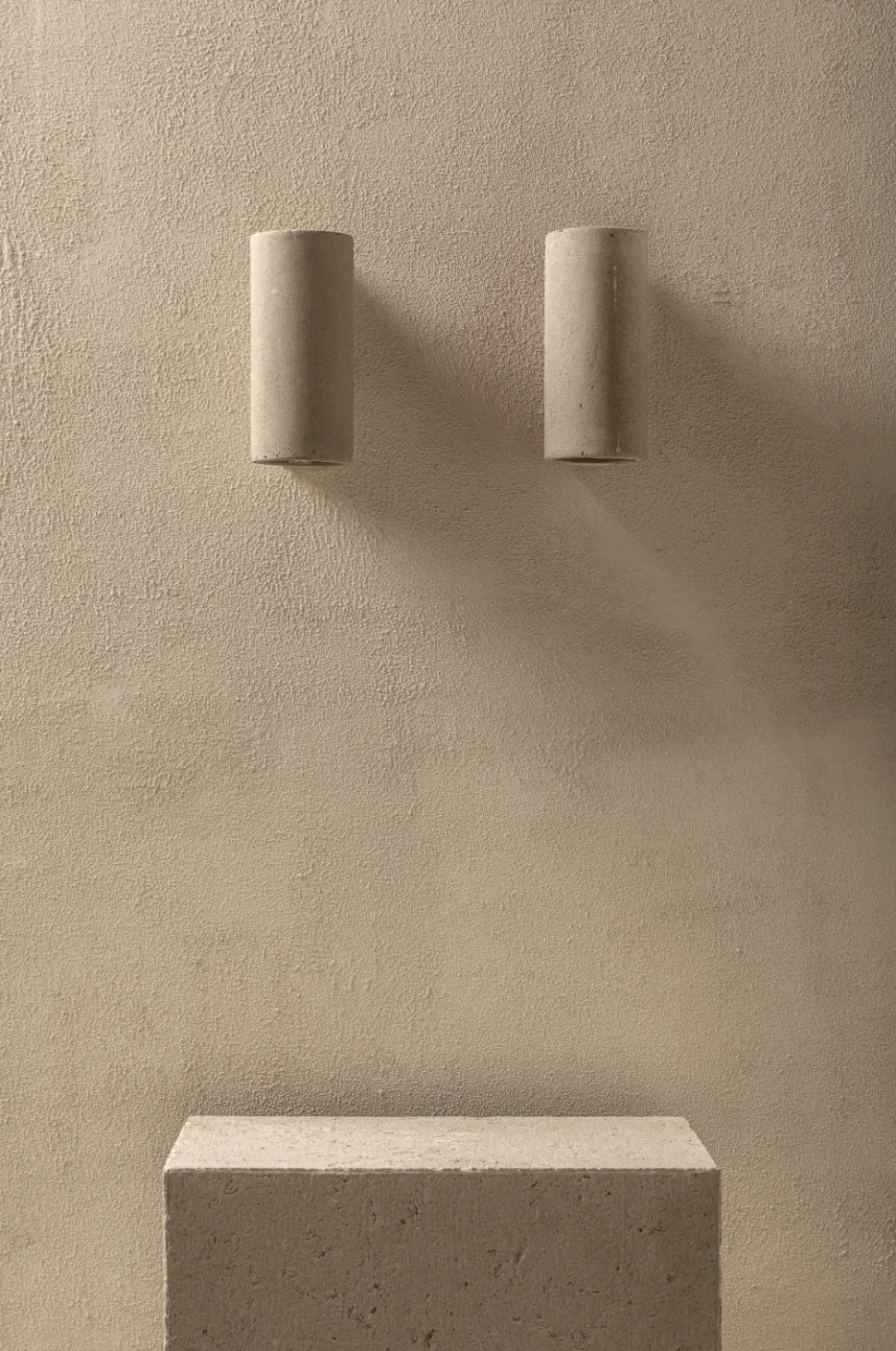 Arkitekten thijs prinsen , der er drivkraften bag lens°ass architects, har noget med mursten. I en renovering, hvor gamle mursten blev genbrugt i overflod, opstod ideen om at designe vægbelysning med samme rektangulære shape. Hans valg faldt på farvet beton i to nuancer og terracotta til at realisere designet. Kegle- og cylinderformerne er varianter og specifikt valgt for at imødekomme efterspørgslen efter karakterfuld omgivelsesbelysning, som oplyser vægge og gulv på en pæn måde.