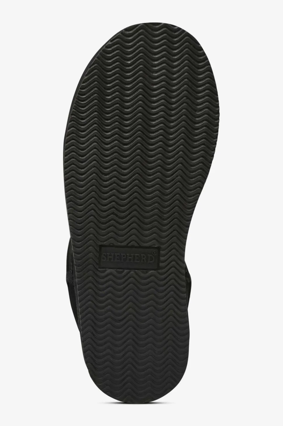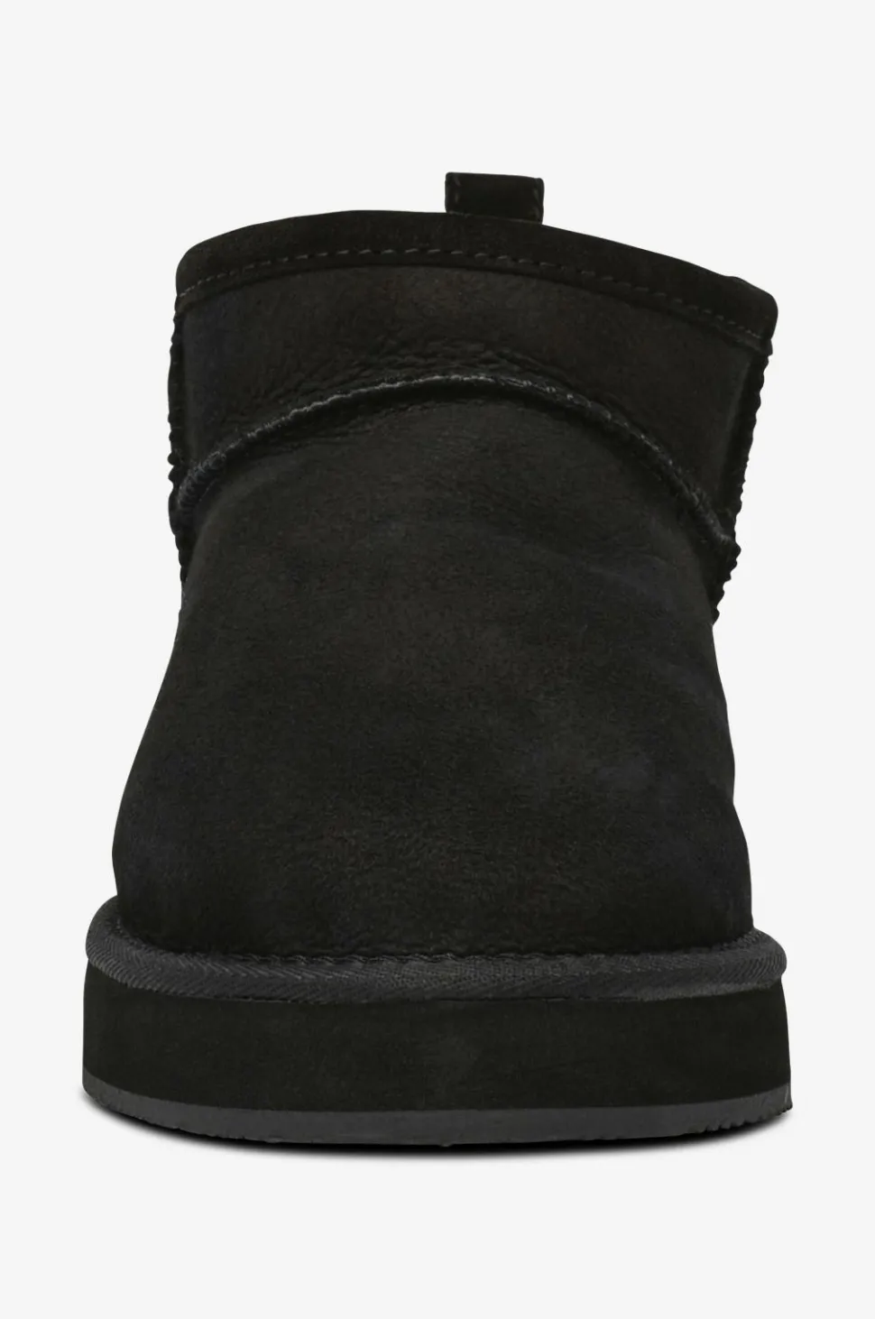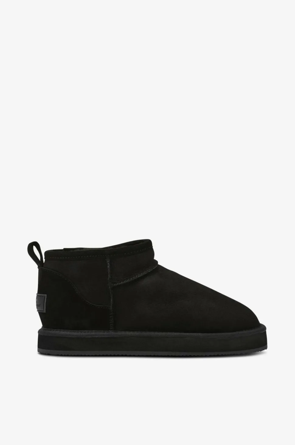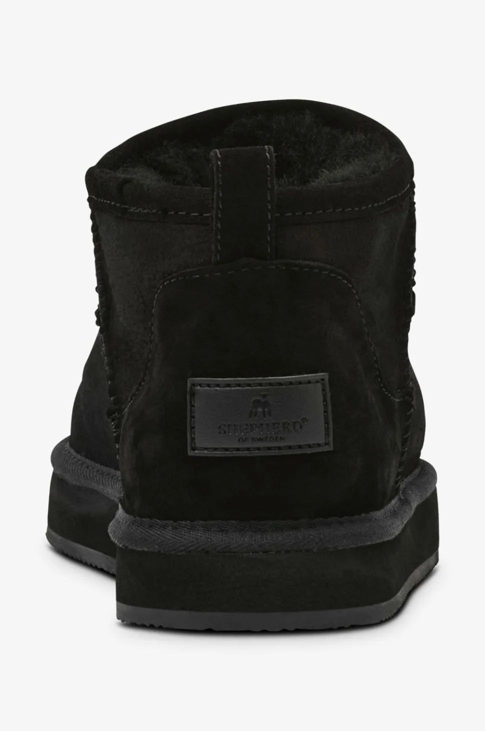 Et par lave støvler i fåreskind. Støvlerne har applikation og hældning bagpå. For og indersål i blødt fåreskind. Ydersål med rillet underside. Sålhøjde 2 cm.