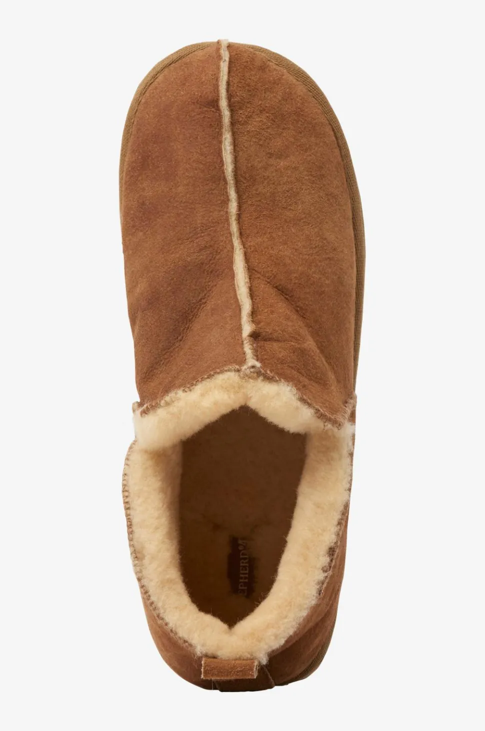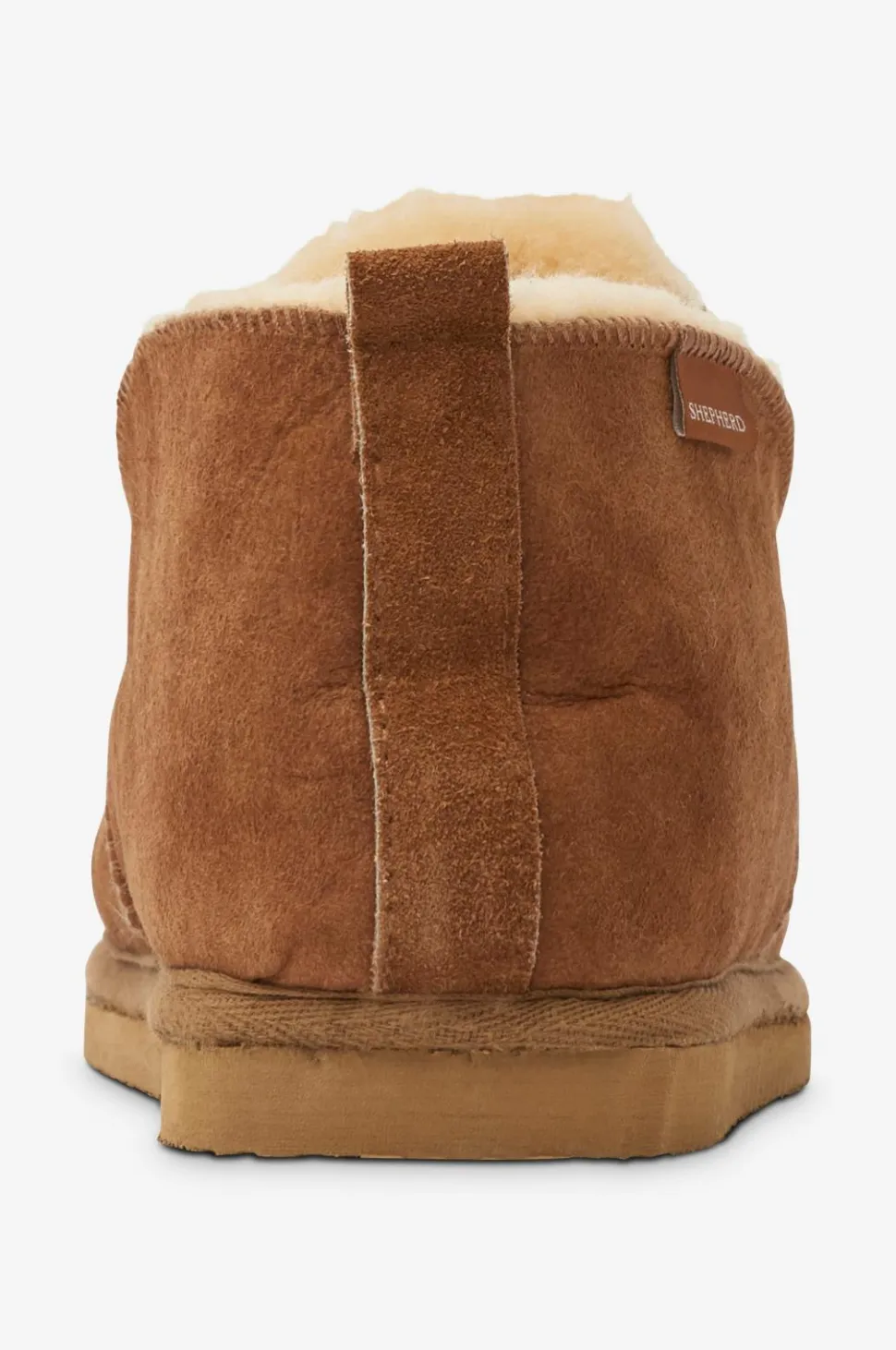 Fåreskindshjemmesko Anton fra Shepherd er en varm og skøn hjemmesko i træk-på-model i fåreskind som varmer skønt og er åndbart. Sålen giver behagelig affjedring og er robust, den klarer en tur til postkassen. Vævet bånd langs hælen bagpå med strop foroven.