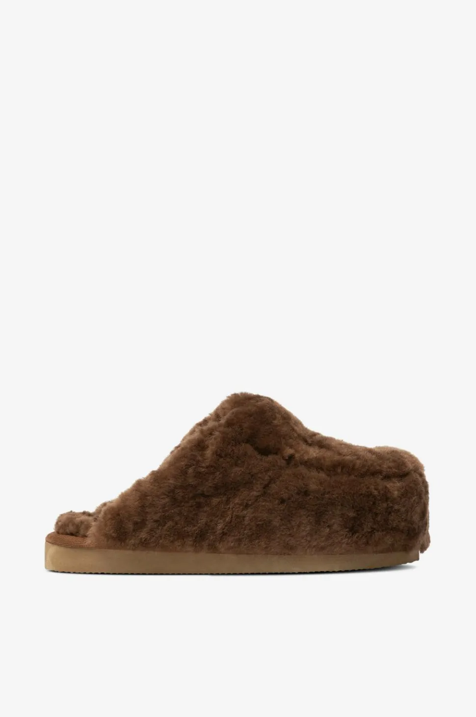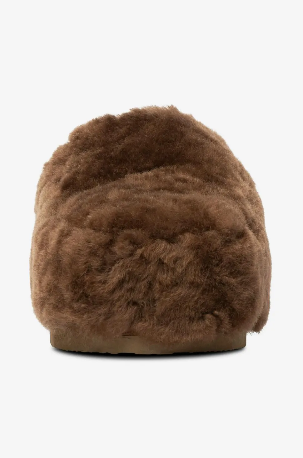 Hjemmesko i slip on-model med varm og blød fåreuld både på ydersiden og indersiden. Kantband i tekstil rundt om sålen. Ydersål i EVA.