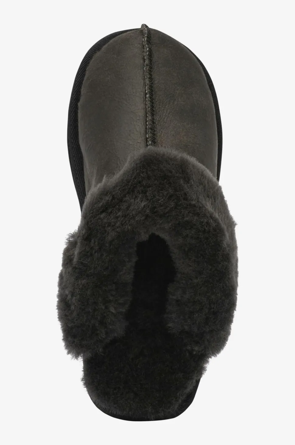 Fåreskindshjemmesko Jessica fra Shepherd er en varm og skøn hjemmesko i slip on-model. Hjemmeskoene er i ægte fåreskind som varmer og kan ånde. Dekorativ pelskant på overdelen. Tekstilkant i matchende farve rundt om sålekanten. Sålen tåler en tur til postkassen og har skøn affjedring.