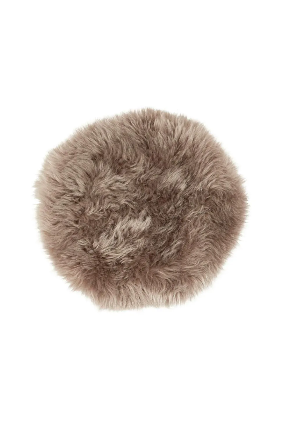 Shepherd molly. En blød stolehynde lavet af langhåret fåreskind. Alle fåreskind er naturlige og kan derfor variere ud fra deres naturlige struktur. Underside i ufarvet læder. 36 cm ø