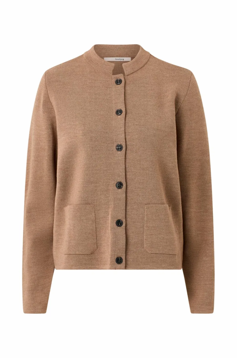 • Fintstrikket, langærmet cardigan i merinouldblanding