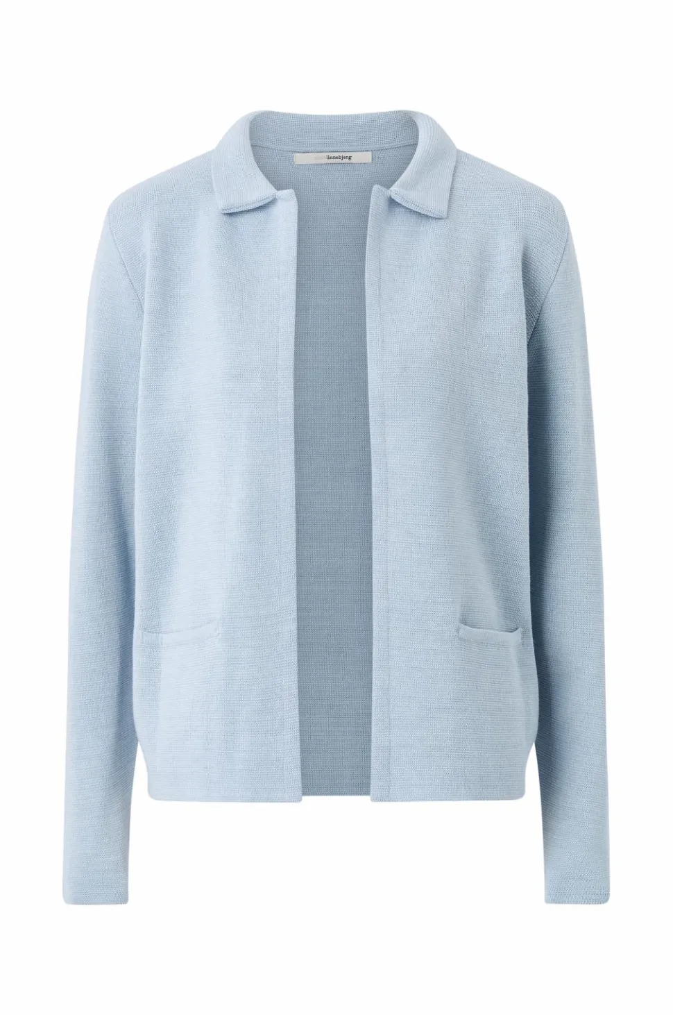 • Fintstrikket, langærmet cardigan i merinouldblanding