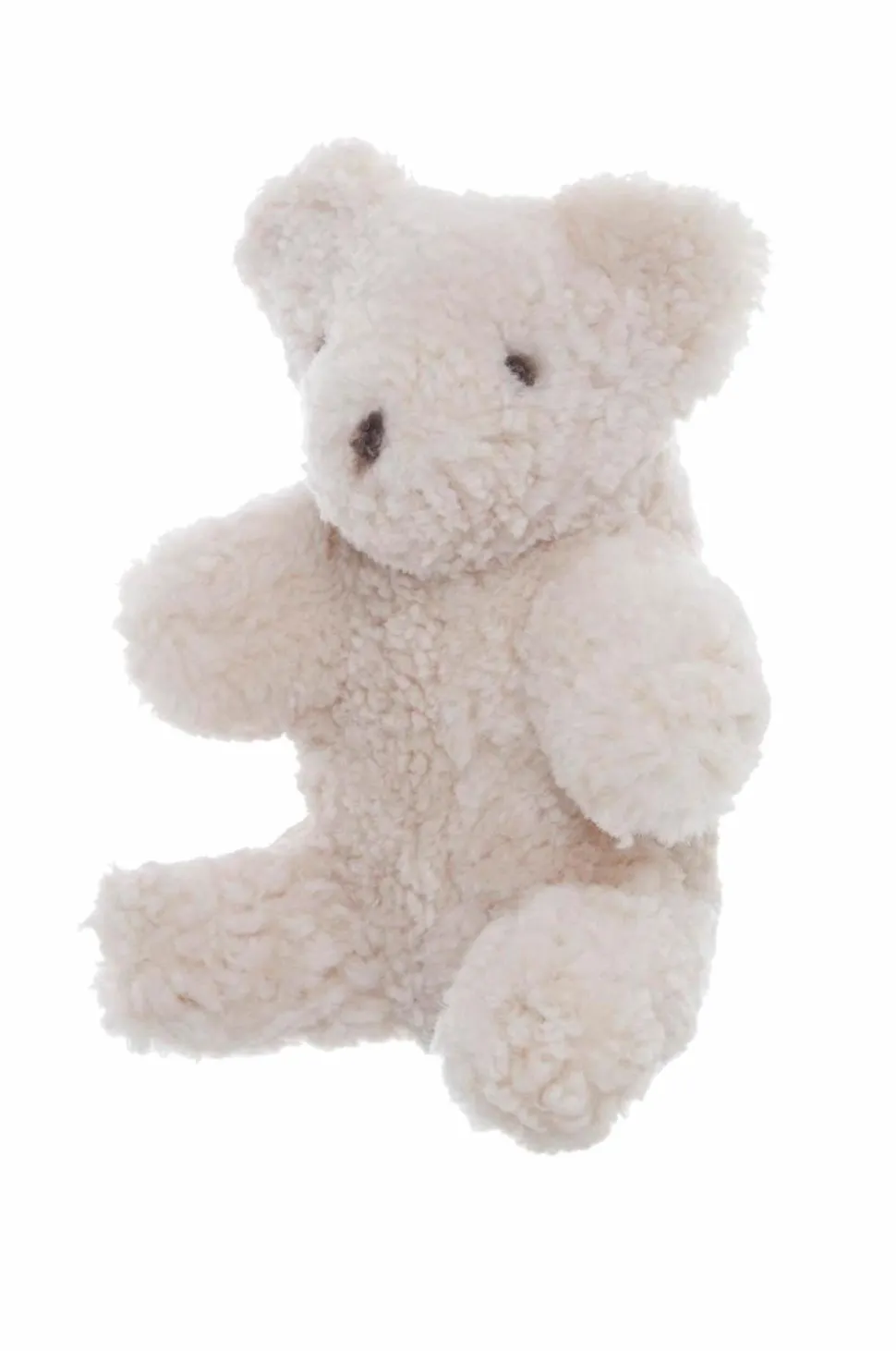 Vores sødeste produkt. Bamse i naturligt krøllet fåreskind fra Australien. To fåreskind er aldrig ens. Det betyder, at det færdige produkt kan variere i udseende, hvad angår farve og struktur. Materiale: fåreskind og polyester.