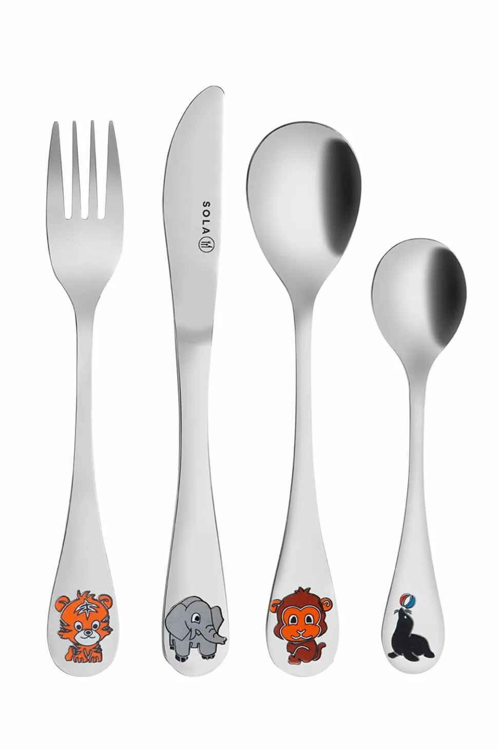 Fint børnebestik med 4 dele fra Sola. Bestik er fremstillet i 18/10 rustfrit stål af høj kvalitet og leveres i fin gaveæske.