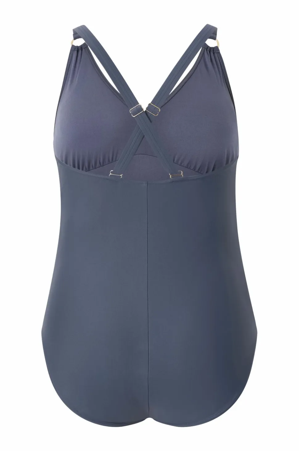 Badedragt med v-udskæring og figurformende rynker. Udstyret med udtagelig vattering og justerbare krydsede rygstropper. Materiale med høj klorresistens og CREORA® HighClo™, der bevarer pasformen i lang tid.