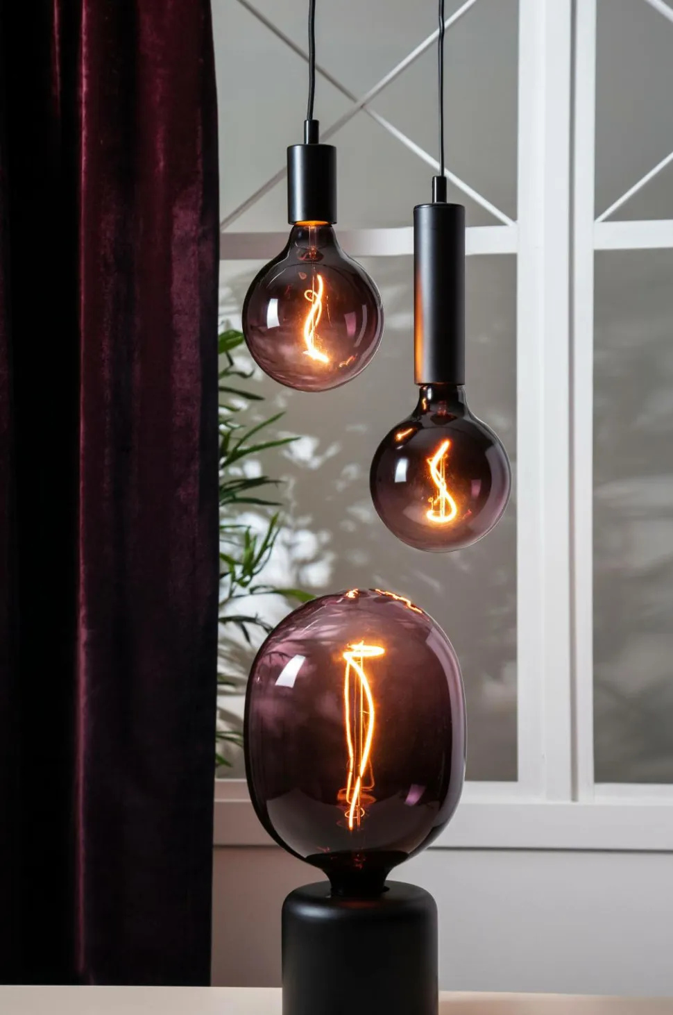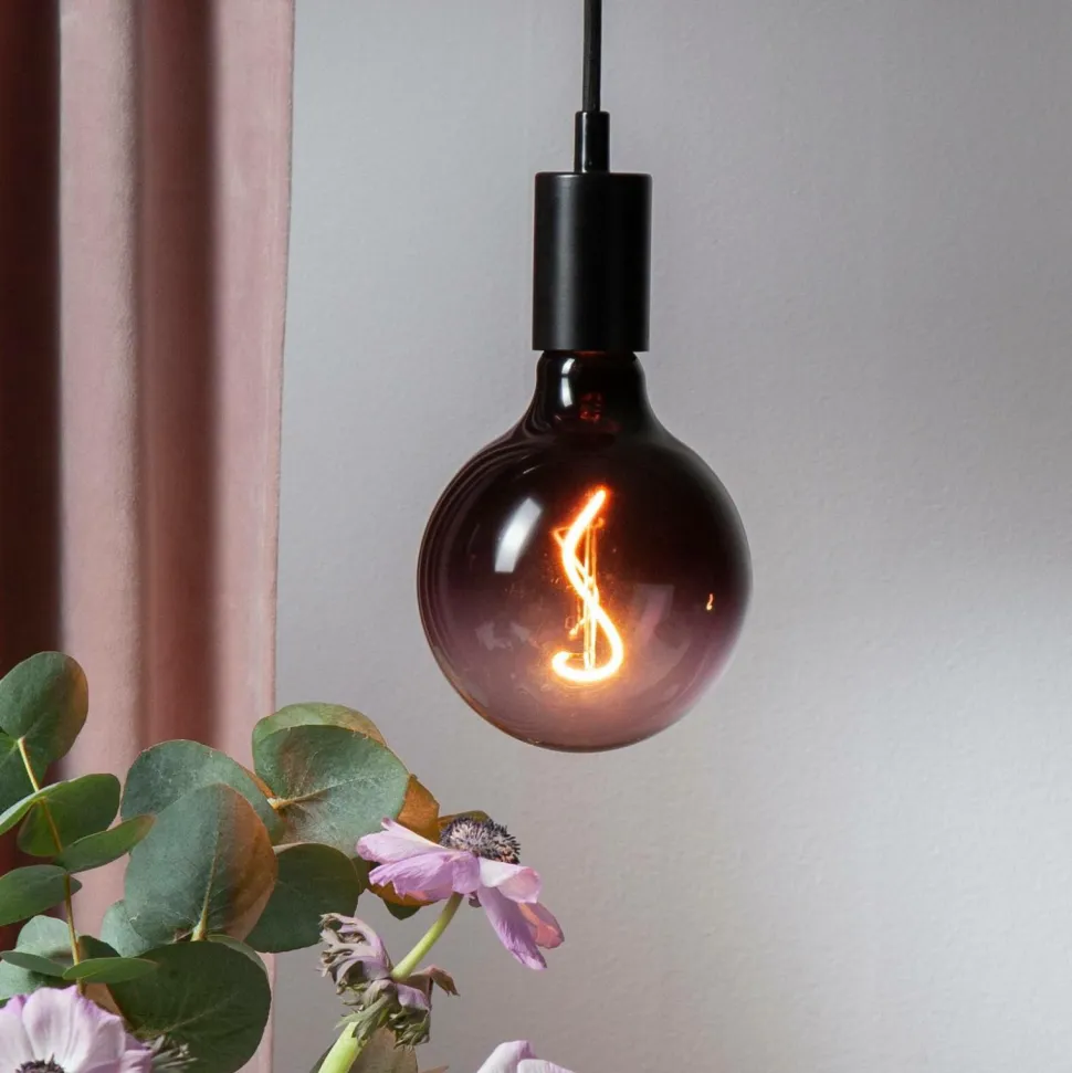 Lækker led-lampe med spændende form og tofarvet glas. 125 mm i diameter. Giver et hyggeligt og varmt skær. Perfekt til dekorativ belysning og passer perfekt i vores ledningssæt eller lampefødder. Hætte: e27. Farvetemperaturen er 1600k og lysstrømmen 60lm.kompatibel med lysdæmper.