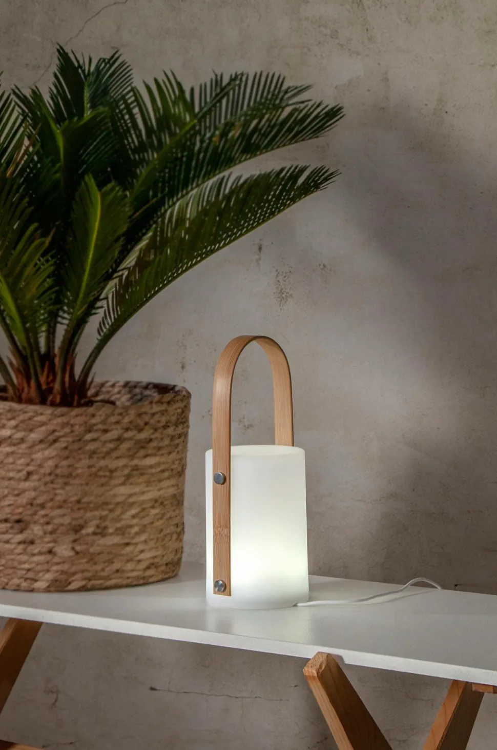 Flot bærbar lanterne med flere farvevalg, varmhvid eller rgb. Vælg den ønskede farve ved at trykke på knappen i bunden. Tryk i 3 sekunder for at slukke lanternen. Genopladeligt batteri, som du oplader med det medfølgende usb c-kabel. Til både indendørs og udendørs brug. Let at bære rundt på og giver en behagelig ekstra belysning på dejlige sommeraftener i haven, på altanen eller på stranden. Højde: 26 cm.