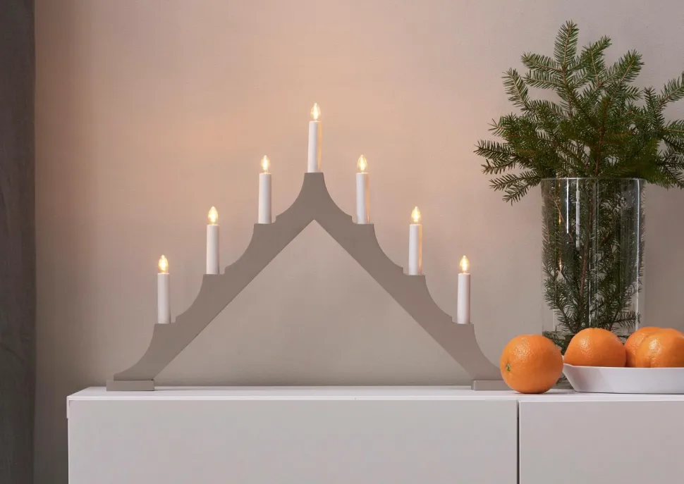 Lysestage lavet af træ. Klassisk formet lysestage med et moderne touch. Flot lysbillede, der skaber den perfekte julestemning i dit vindue.