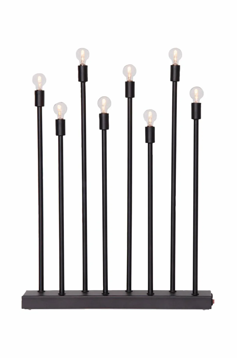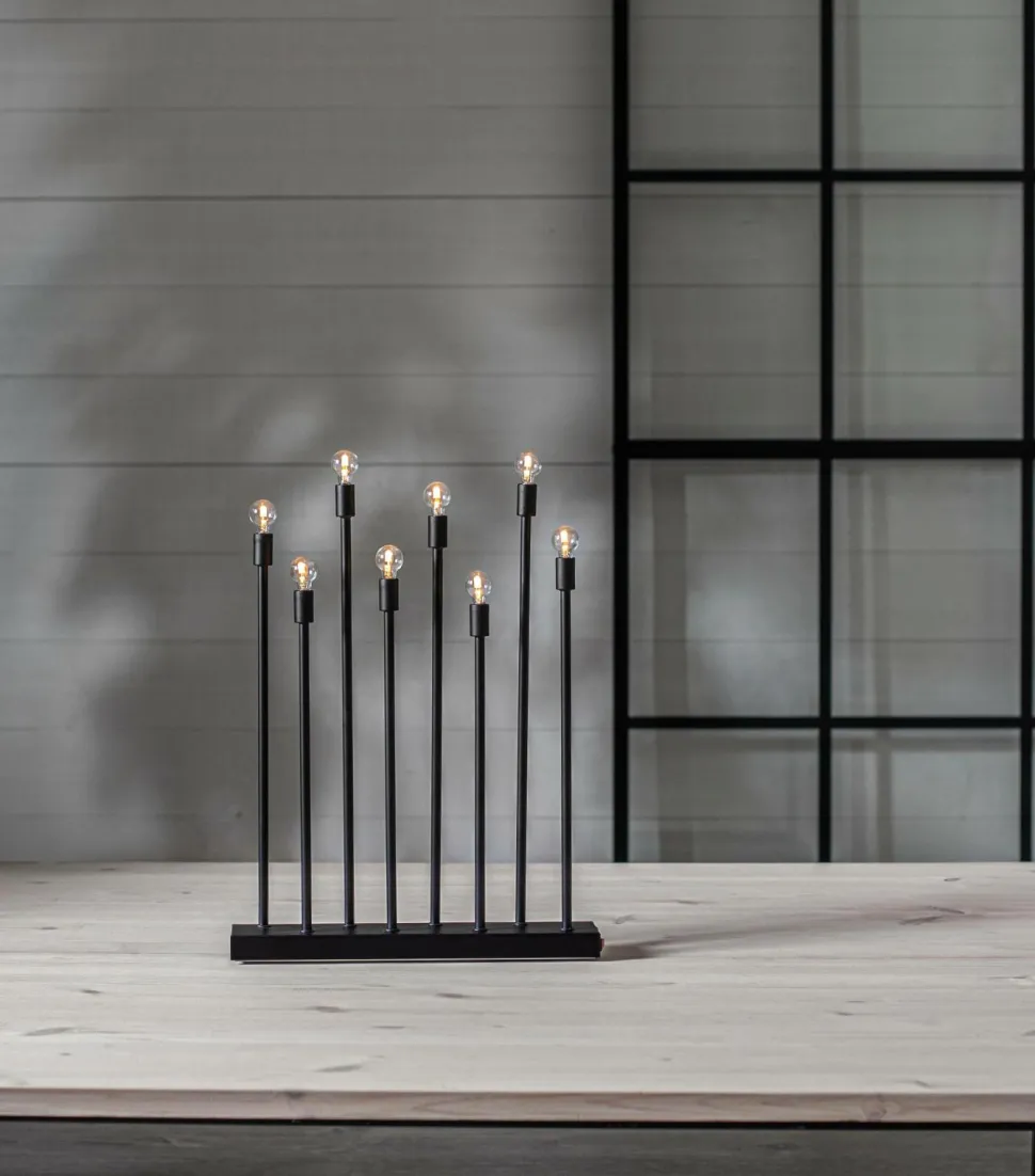 Genopladelig moderne lysestage i metal med runde led-lys, der giver et stemningsfuldt lys. Passer godt i et vindue eller på en bænk eller hvorfor ikke på et bord? Den er nem at placere, da der ikke kræves en stikkontakt i nærheden.
