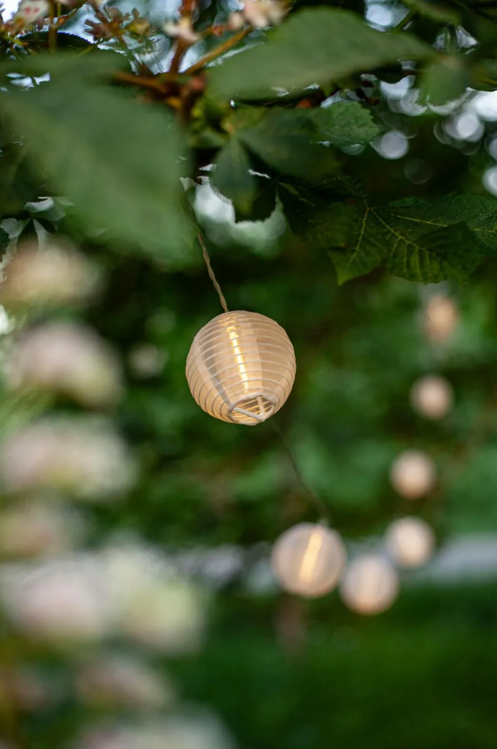 Lyskæde fint dekoreret med rispapirlamper til indendørs brug. Lyskæden har 10 LED-pærer med varmt hvidt skær. En skøn lyskæde at pynte op med til hverdag og til fest. Bredde/længde: 135 cm. Højde: 7 cm. Dybde: 7,50 cm