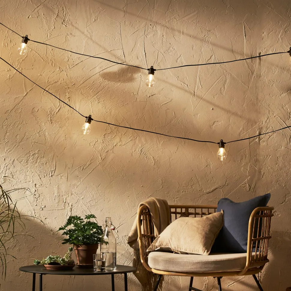 Vores nye serie af lyskæder med udskiftelige LED-pærer fås i to længder. Lyskæden med 10 LED-pærer er ca. 7 m lang og lyskæden med 18 LED-pærer er ca. 13,5 m lang. Lyskilden er LED-filament og giver en flot varm hvid glød. Gennemsigtigt cover i A60 størrelse som også fås som reservedel. Perfekt dekoration til hverdag og fest. Timerfunktion i transformeren, et tryk på knappen og lyskæden blinker, timerfunktion slået til. 1 ekstra pære medfølger i pakken.