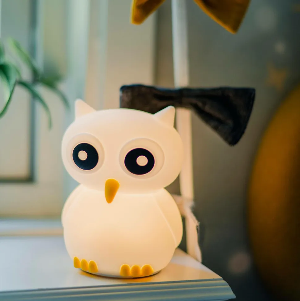 Natlampe med ugle, drevet af et genopladeligt batteri. Opladningskabel med usb-stik medfølger. Oplader i 2,5-3 timer og lyser derefter i ca. 9-10 timer. Tænd, sluk eller skift farve med et let tryk! Timerfunktion får produktet til at slukke efter 3 timer, hvis ingen har rørt ved det.