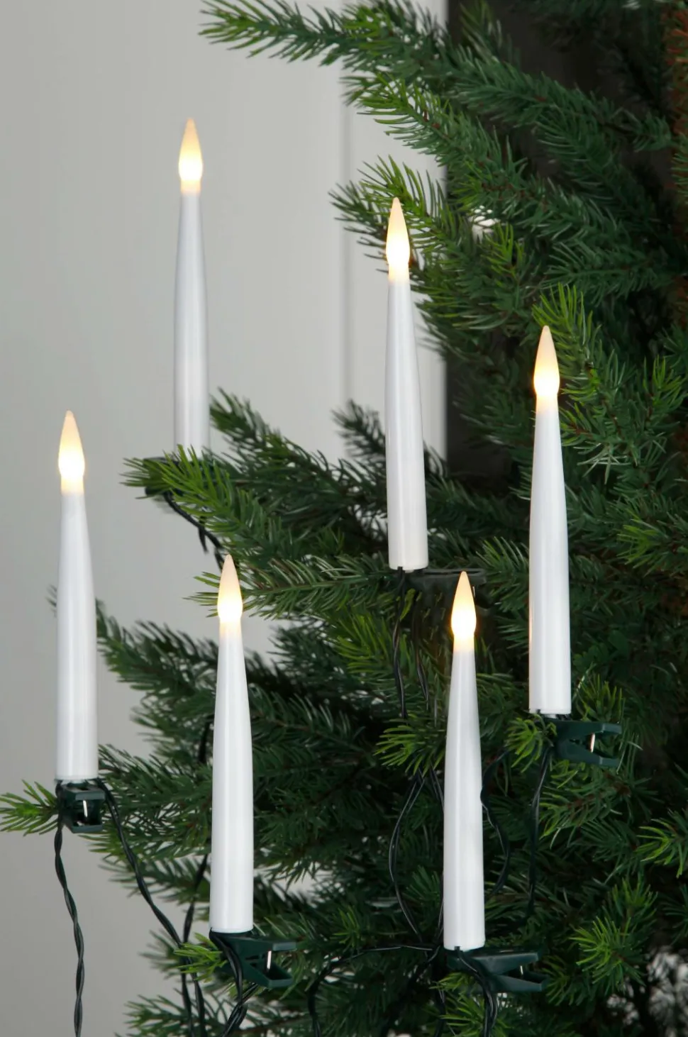 Juletræslys med 16 tynde led-lyskilder. Lysene ser meget livagtige ud og skaber en dejlig glans. Pynt træet med disse lys for at skabe en hyggelig julestemning.