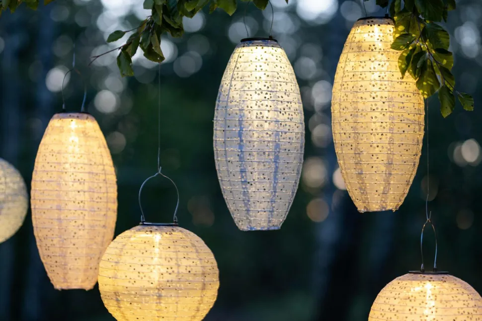 Solcellelanternen Festa er lavet af polyester med et hulmønster, der skaber et smukt skyggespil, når den lyser i mørket. Festa bliver en smuk dekoration både i haven, på terrassen eller altanen. Placer lanternen, hvor solen kan nå panelet i løbet af dagen for at få den ultimative opladning af det medfølgende batteri.