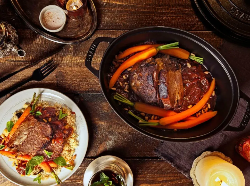 Gryde af støbejern med matsort emaljering. Dette forbedrer ikke kun støbejernets varmeledende egenskaber, men fremhæver også madens naturlige smag. Diameter 33 cm. Rumfang 6,7 l.
