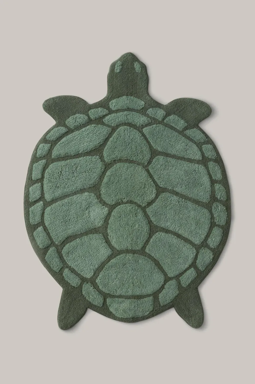 Blød, tuftet badeværelsesmåtte i form af en skildpadde. Str. 75×98 cm.