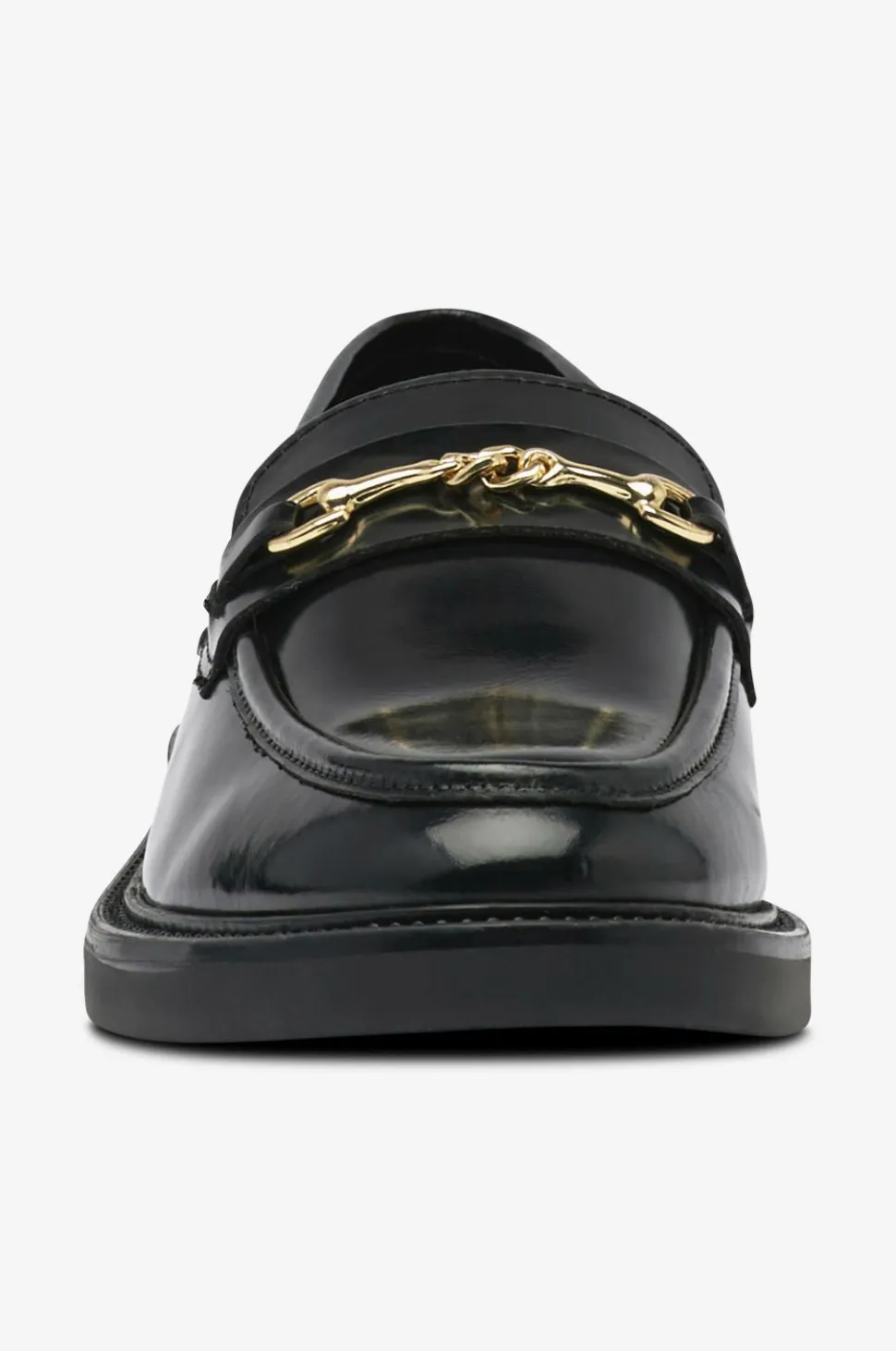 • Dekorativ rem med guldfarvet spænde over foden