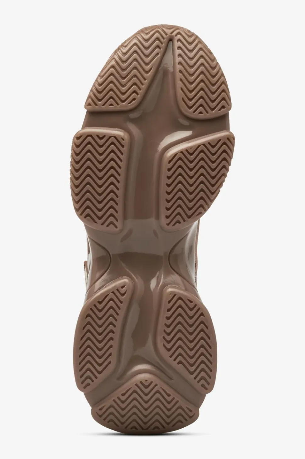 Slip on-model i stretchstof med nitter i forskellige størrelser. Stort logo i gummi på den ene side. Grov, skinnende sål. Trækstrop bagpå.