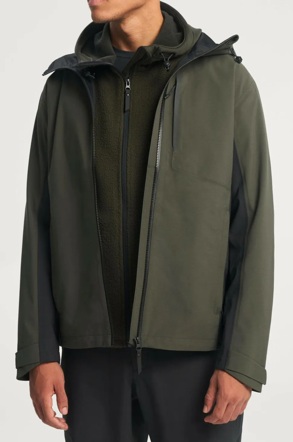 Jakken har hætte med elastisk løbegang og stop samt høj krave med børstet polyester på indersiden. Jakken lukkes med lynlås som er vandtæt. Ergonomisk forbøjede ærmer og justerbar ærmekant med velcroremme. En brystlomme samt to sidelommer som alle er vandtætte. Jakken er uforet og har ingen inderlommer.