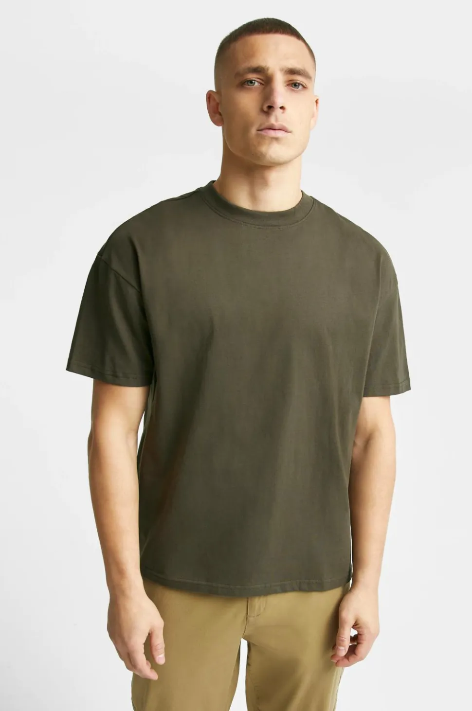T-shirt Studio SS Tee fra Studio Total. T-shirt med oversized pasform og lav skuldersøm. Rund hals med en noget højere ribkant. Vil du have en t-shirt med regular fit, anbefaler vi i stedet Capsule Tee varenr. 7011315.