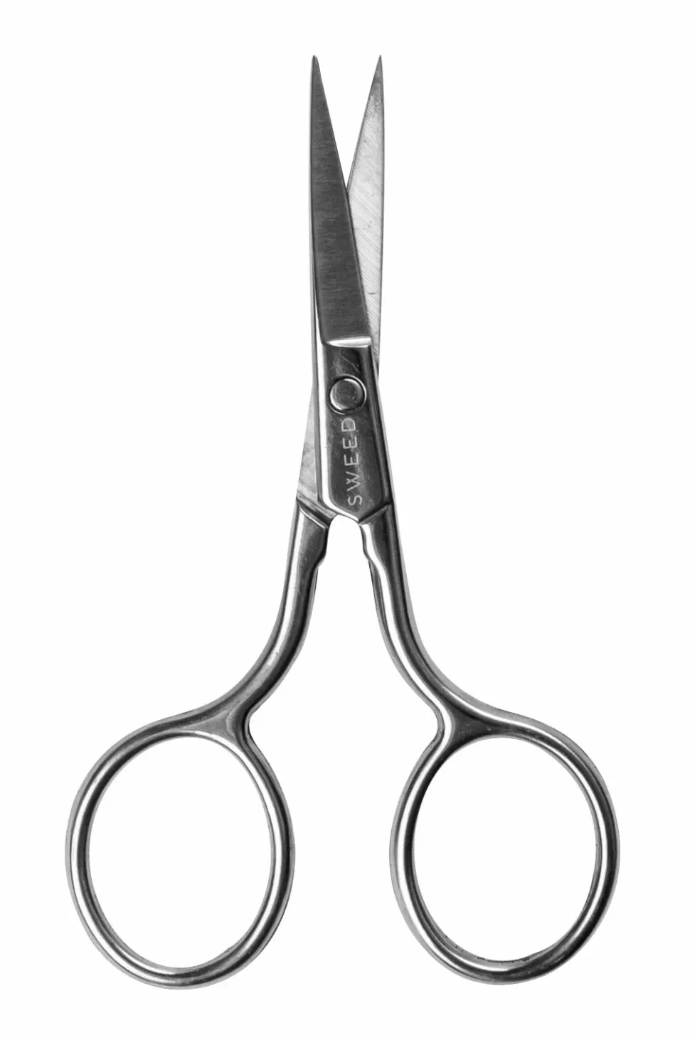Lige saks i rustfrit stål af høj kvalitet med supertyndt blad til trimning af øjenbryn og kunstige øjenvipper. Håndlavet og designet til at holde.