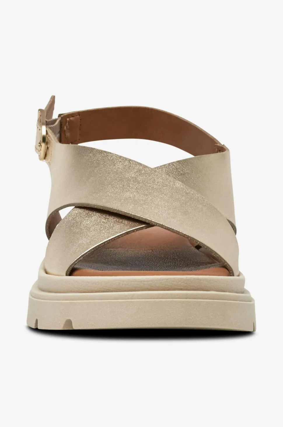 • Brede, krydsende remme over foden
