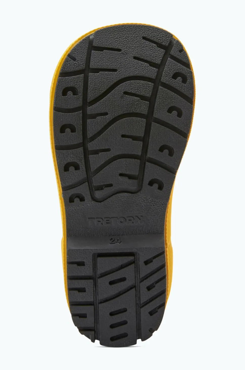 Gummistøvle Gränna fra tretorn er af naturblæst gummi og har stribet skaft. PVC-fri. Blødt fleecefor. Indersålen kan tages ud. Refleksdetalje bag på skaftet. Navnemærke. Træk-på-tamp bag på skaftet. Gummiforstærkning i sålekanten. Gummisål med godt fodfæste.