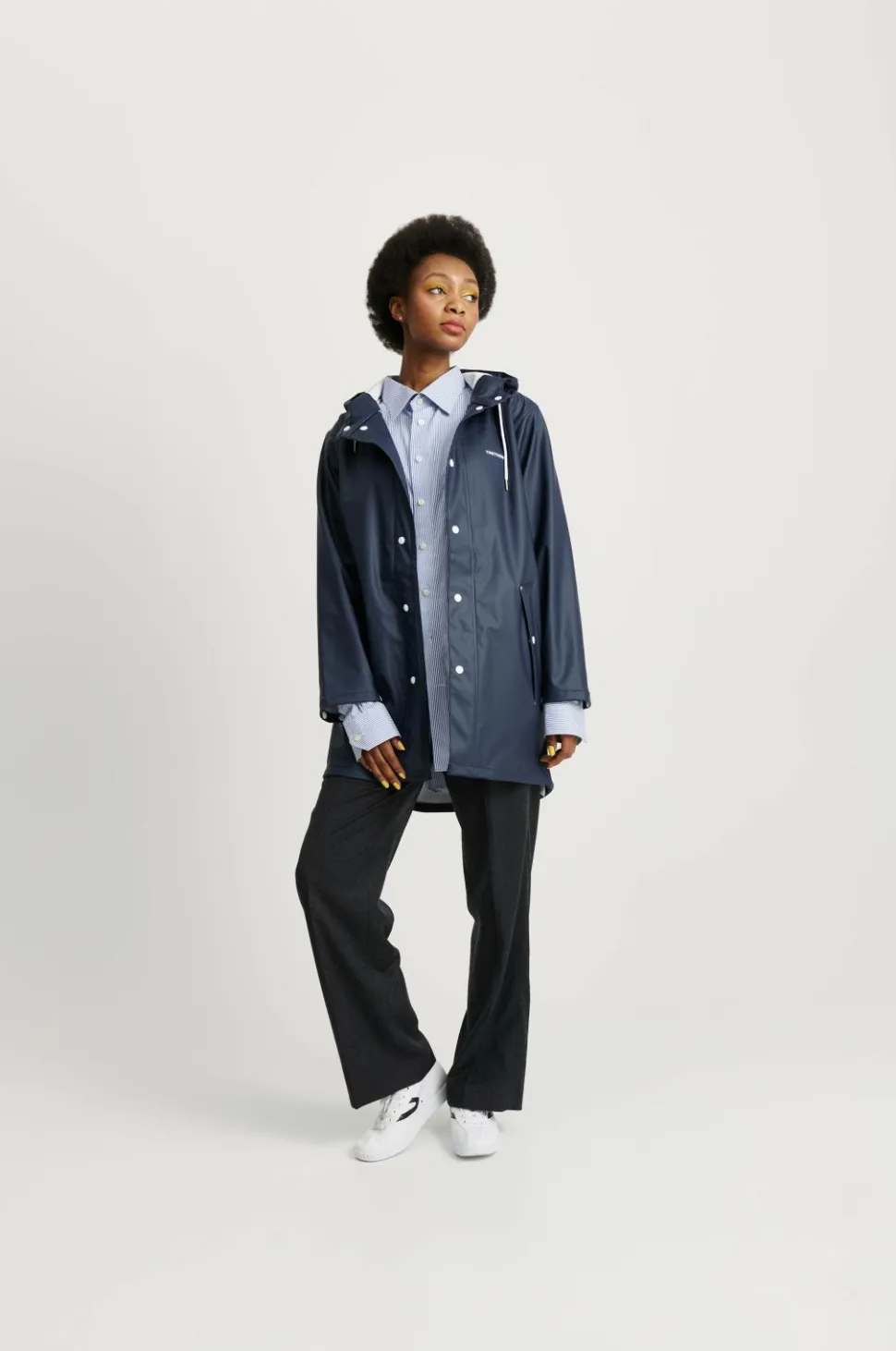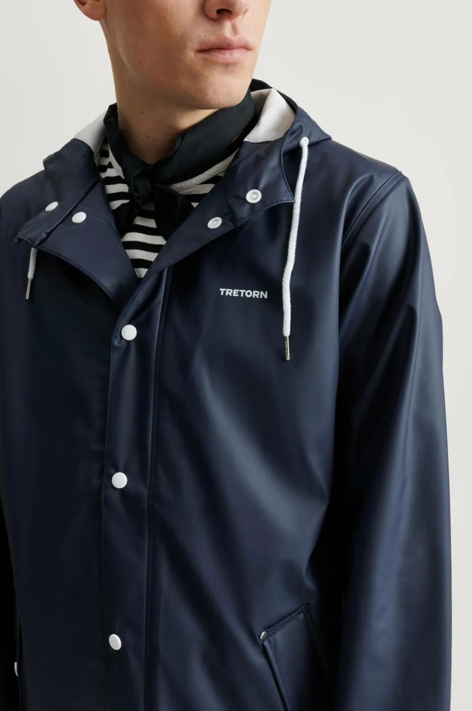 Regnjakke Wings Classic fra Tretorn er en ægte klassiker i unisexmodel. Model er lidt længere med hvide detaljer. Den faste hætte har løbegang med snøre foran. Hvide plasttrykknapper foran og i ærmekanten. To forlommer med flap, der holder vand ude. Jakken, som er helt vandtæt, er fremstillet af PVC-fri PU med varmesvejsede sømme. Længde 90 cm i str. M.
