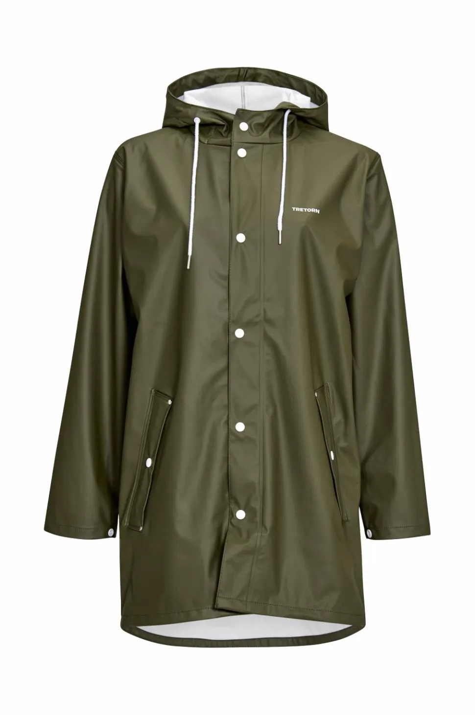 Regnjakke Wings Classic fra Tretorn er en ægte klassiker i unisexmodel. Model er lidt længere med hvide detaljer. Den faste hætte har løbegang med snøre foran. Hvide plasttrykknapper foran og i ærmekanten. To forlommer med flap, der holder vand ude. Jakken, som er helt vandtæt, er fremstillet af PVC-fri PU med varmesvejsede sømme. Længde 90 cm i str. M.