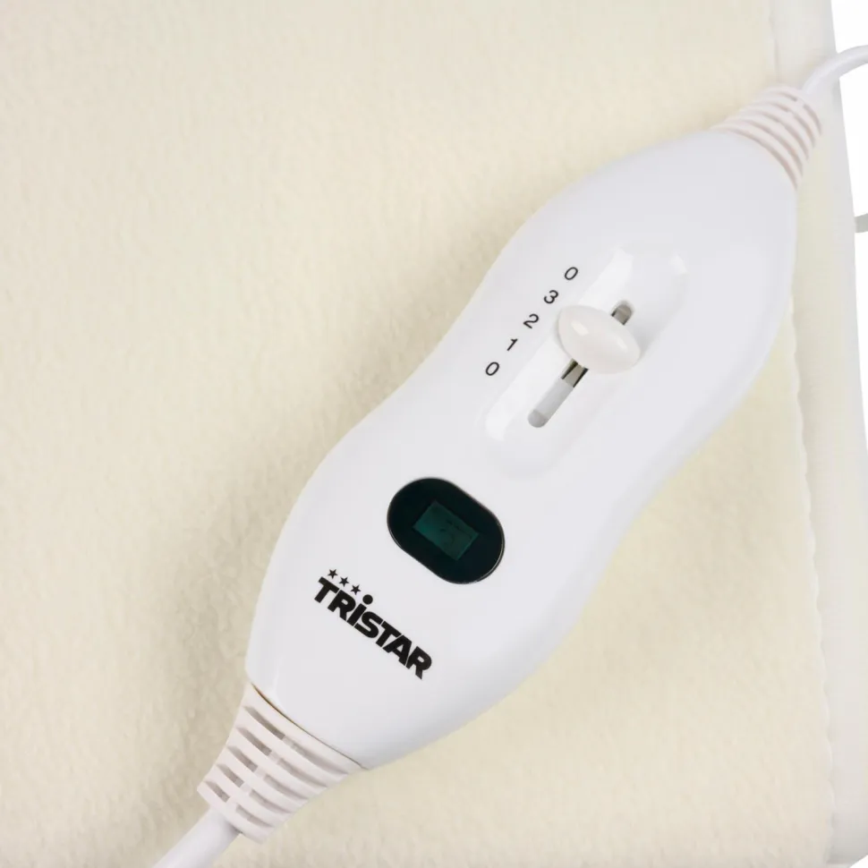 Tristar elektrisk varmetæppe til 1 person, BW-4753, gør sengen varm og skøn, hver gang du skal sove. Tæppet er lavet af fleece, som gør det blødt og skønt. Takket være den integrerede overophedningssikring er tæppet sikkert og behageligt at anvende. Varmekontrollen er aftagelig, så det er nemt at vaske tæppet.
