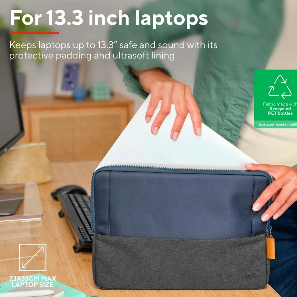 Sig farvel til klodsede laptoptasker. Med et slankt og elegant design er den behagelig at bære og passer nemt i din kuffert eller taske, så du kan tage den med på farten.