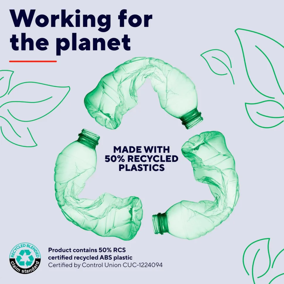 – Genanvendt indhold: 50%.