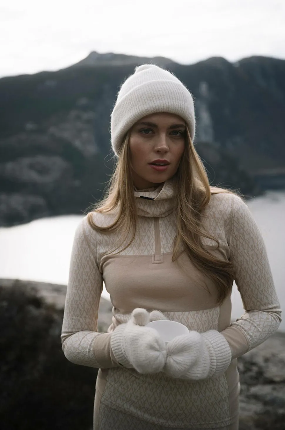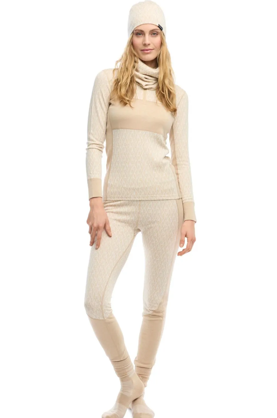En blød undertøjssweater i en blød, ikke-kløende merinouldblanding. Jacquardstrikket mønster. Høj halsudskæring og halvlang lynlås. Bløde, flade flatlock-sømme. Den isolerer godt i vådt vejr og kan bruges som inderste lag til de fleste aktiviteter.